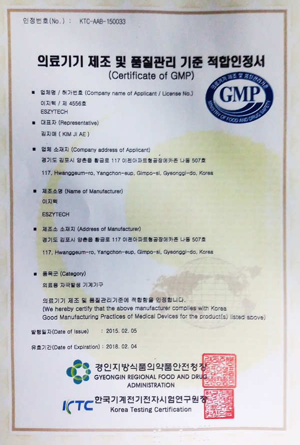 의료기기 제조및, 품질관리 기준 적합인증서 GMP획득 페이지 정보 작성자 온수매트 작성일15-02-09 13:53 조회5,334회 댓글0건 본문 의료기기 제조업허가및, 품목하허가를 득하고 의료기 제조업체로 인가를 받았습니다. 히트파이프 온돌매트및, 의료용자극 발생기를 의료기로 제조할수 있는 인증서 입니다. 댓글목록 등록된 댓글이 없습니다. 이전글 다음글 목록