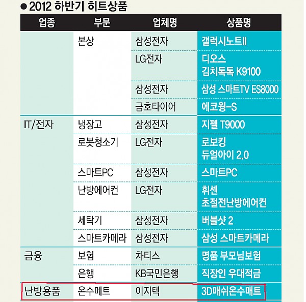 이지텍 냉온 사계절 온수매트가 올해의 히트상품으로 선정 되었습니다.